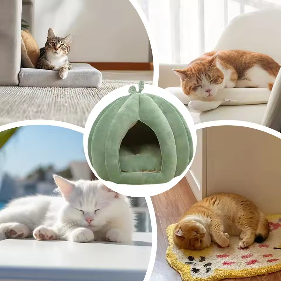 Ce nid pour chat épais et fermé en forme de citrouille est idéal pour garder votre compagnon bien au chaud pendant les saisons froides. Son design Halloween original apporte une touche ludique et décorative tout en offrant un espace de repos confortable.